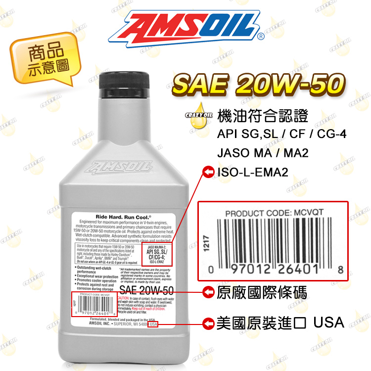 品名 : AMSOIL安索 MCV 4T 20W-50 機車全合成機油