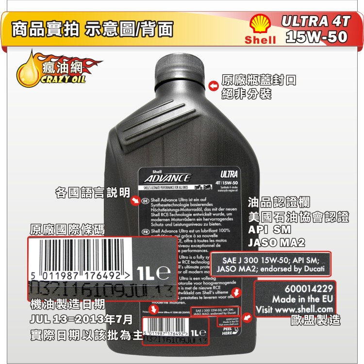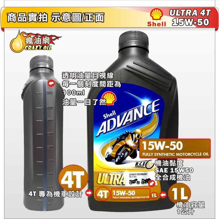 品名 : Shell ADVANCE ULTRA 4T 15W50 全合成機油