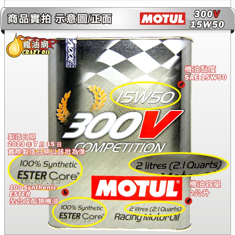 品名 : MOTUL 300V COMPETITION 15W-50 汽車酯類全合成機油