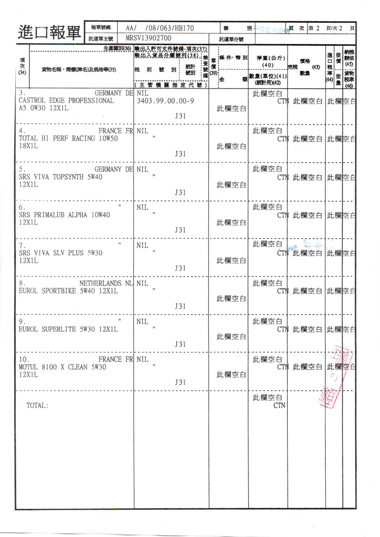 ➤ 由於機油為石油、天然氣提煉再製而成的石化產品,從國外原廠出廠時,並不會標示保存期限,因基本上機油並不會有過期的問題。