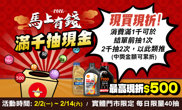 100%馬上中獎 價值10-500元現金( 總共40抽 )