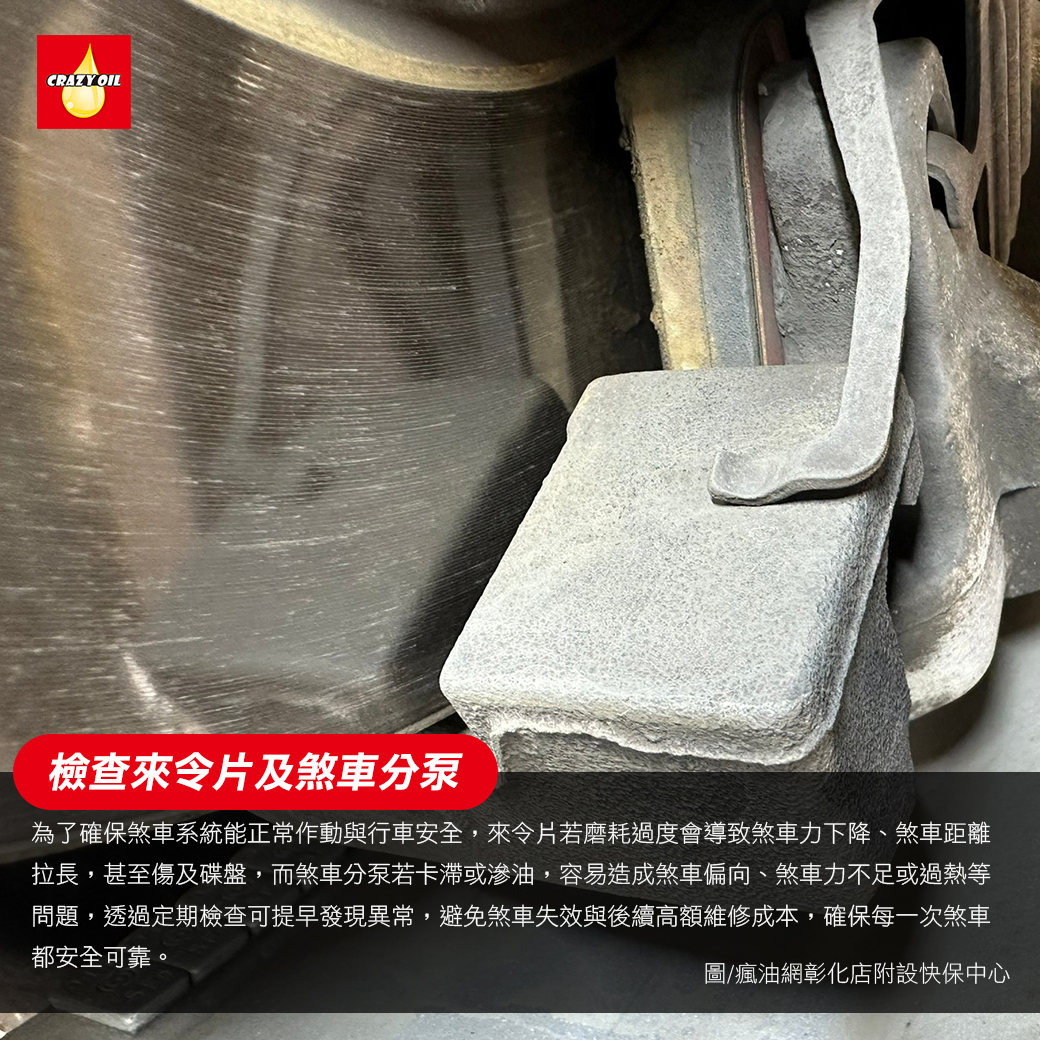 ▲ 檢查來令片與煞車分泵。 (瘋油網彰化店附設快保中心 / 攝影)