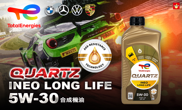 TOTAL QUARTZ INEO LONG LIFE 5W-30 採用 Low SAPS 技術,有效保護 DPF 與三元催化系統。符合 ACEA C3 規範與 BENZ、BMW、Porsche、VW等四大車廠標準,適用於汽油與柴油車種,無論市區或高速行駛皆表現穩定。搭載獨家 Age技術,具備優異抗磨與清潔能力,確保引擎動力持續輸出並延長使用壽命。