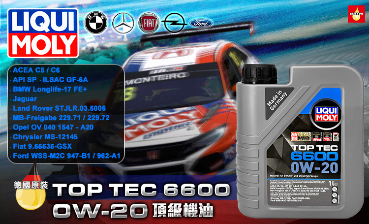 LIQUI MOLY TOP TEC 6600 0W-20 頂級機油