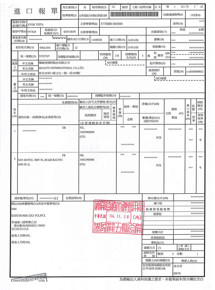 ➤ 依台灣商品標示法規規定商品需標示保存日期,基本上機油放置於陰涼乾燥處且不開封即可保存5年以上。
