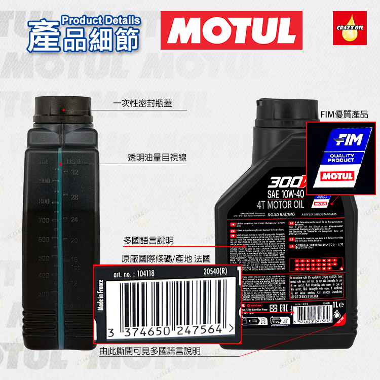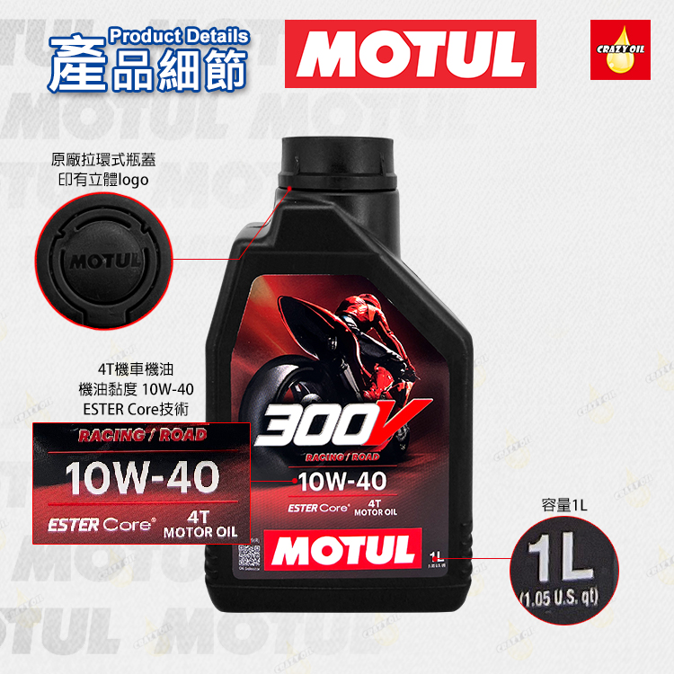 品名 : MOTUL 300V ROAD RACING 4T 10W-40 酯類全合成機油