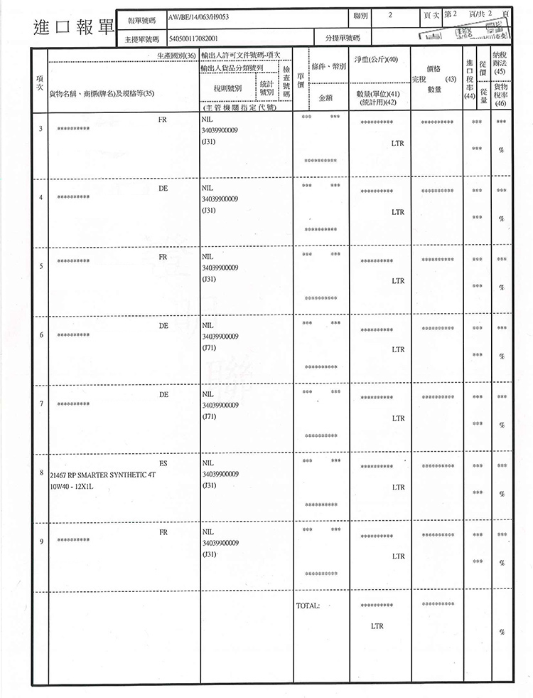 ➤ 全館油品皆已投保一千萬產品責任險,可安心購買。