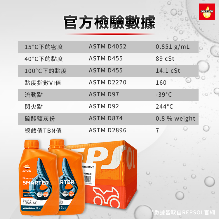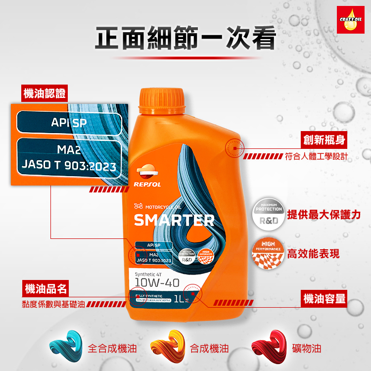 品名 :REPSOL SMARTER SYNTHETIC 4T 10W-40 全合成機油
