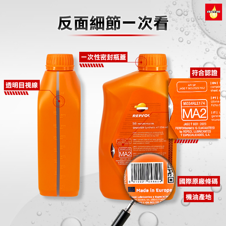 ➤ 【最大保護性】標籤:由REPSOL的研發團隊開發設計,為引擎提供最大的保護性。