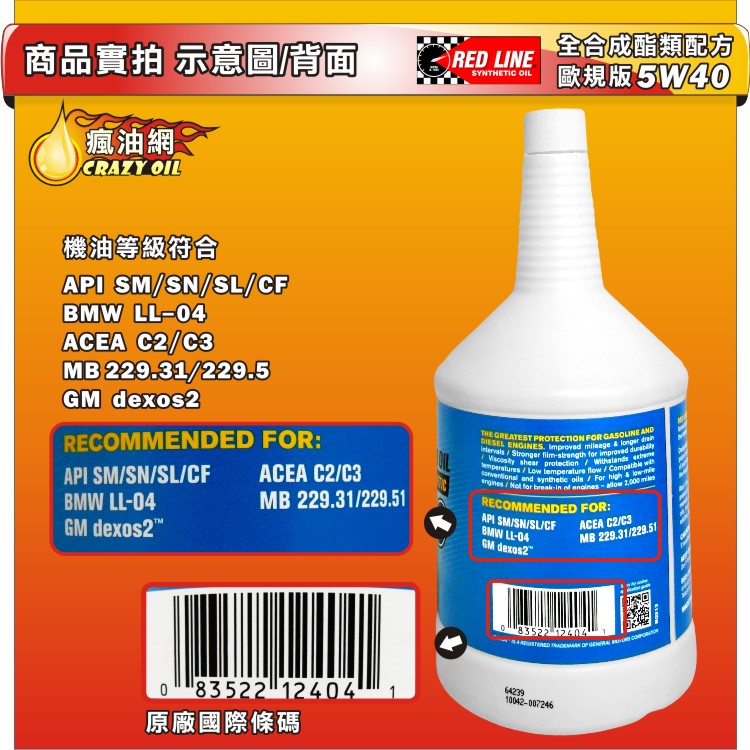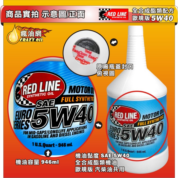 品名 : RED LINE 歐規版 5W40 汽車全合成酯類機油