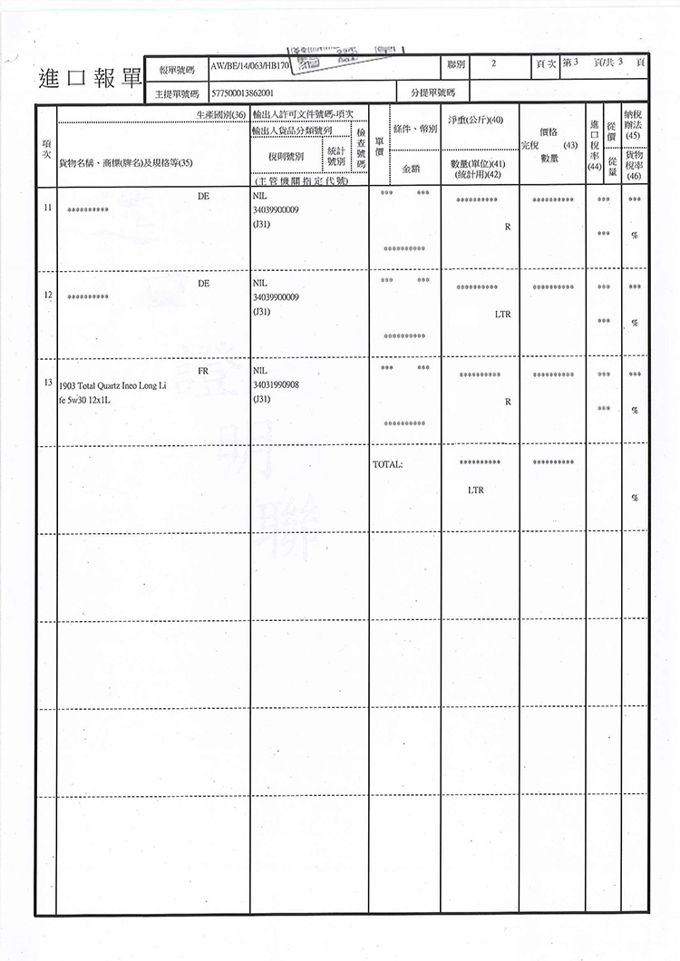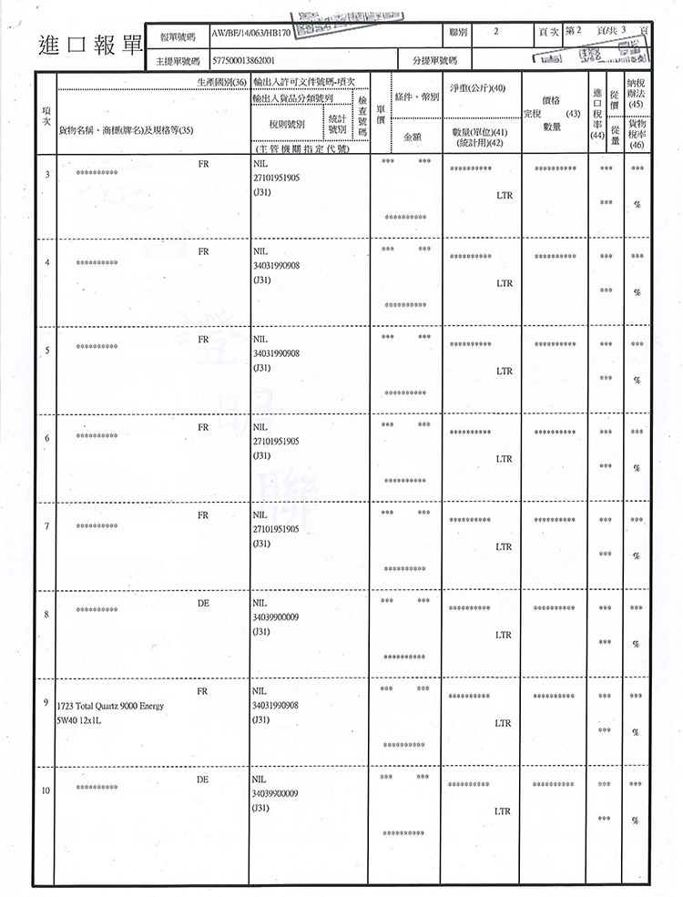 ➤ 全館油品皆已投保一千萬產品責任險,可安心購買。