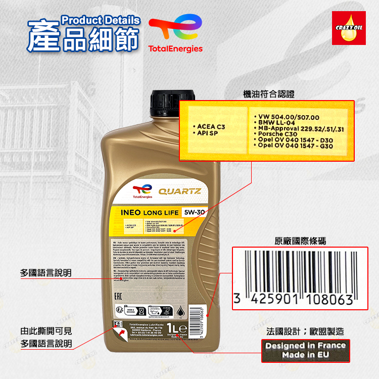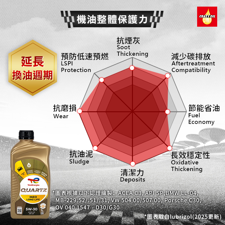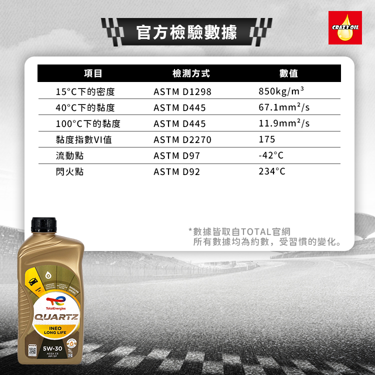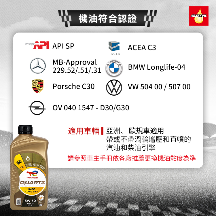 ➤ 比TOTAL MC3 5W30 認證更頂級!更長效!