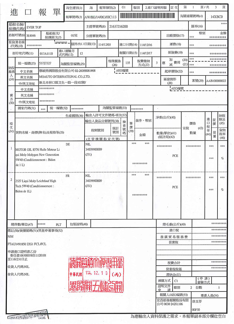 ➤ 依台灣商品標示法規規定商品需標示保存日期,基本上機油放置於陰涼乾燥處且不開封即可保存5年以上。
