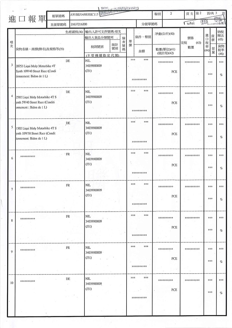 ➤ 全館油品皆已投保一千萬產品責任險,可安心購買。