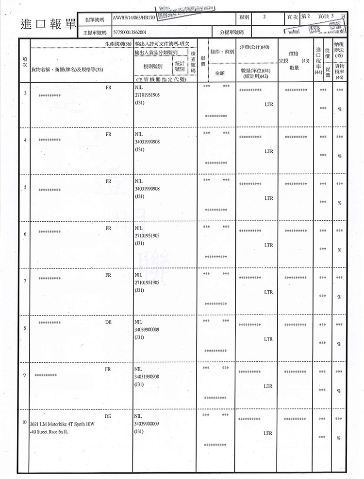 ➤ 全館油品皆已投保一千萬產品責任險,可安心購買。
