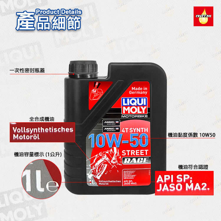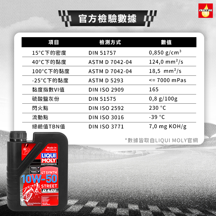 品名 : LIQUI MOLY MOTORBIKE 4T SYNTH 10W-50 STREET RACE 全合成機油