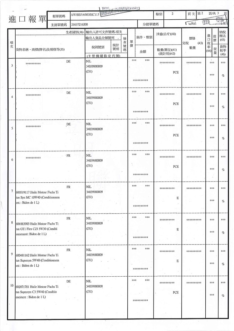 ➤ 全館油品皆已投保一千萬產品責任險,可安心購買。