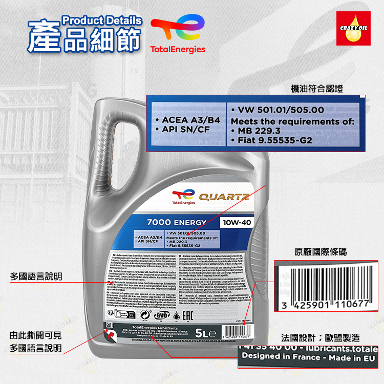 品名 : TOTAL QUARTZ 7000 ENERGY 10W-40 合成機油