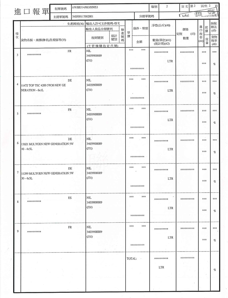 ➤ 全館油品皆已投保一千萬產品責任險,可安心購買。