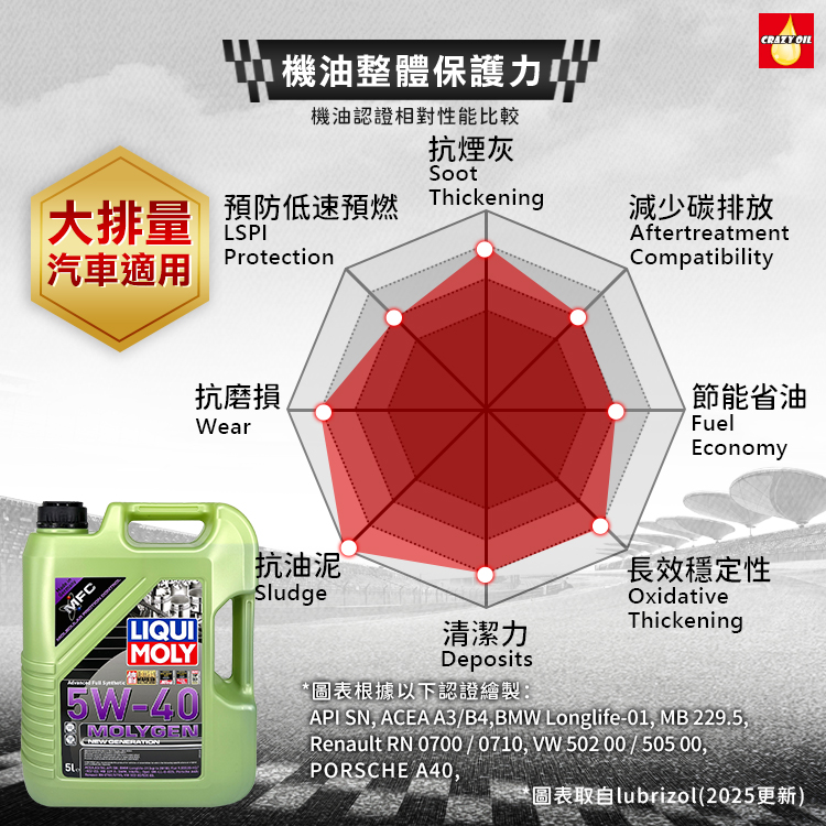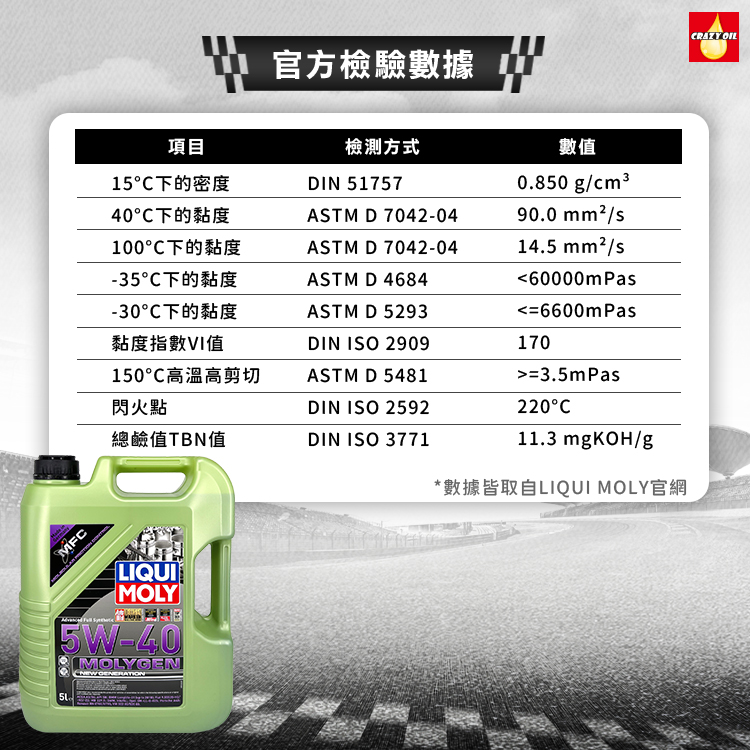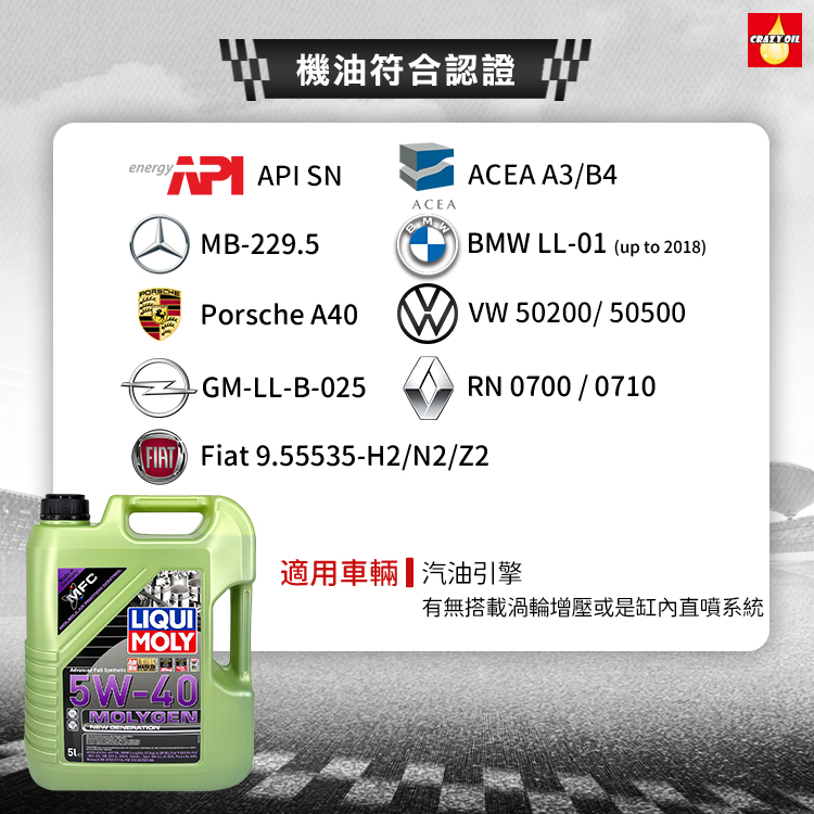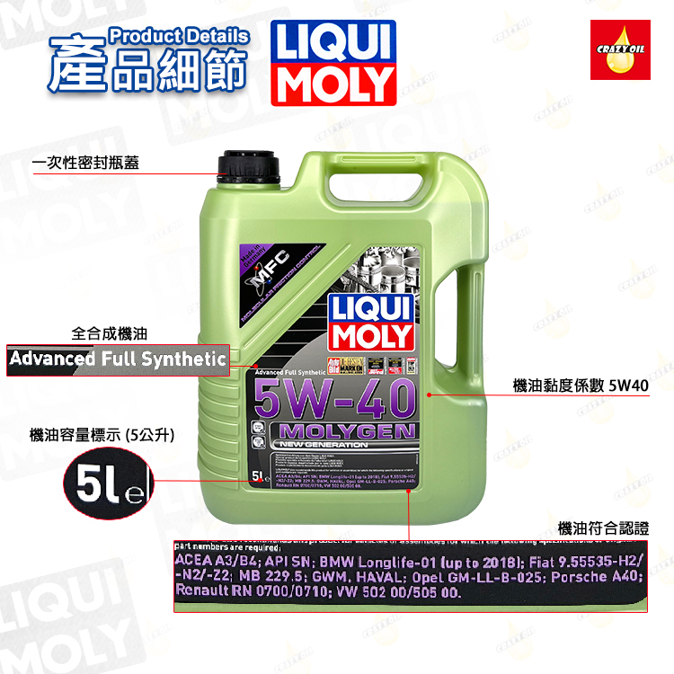 品名 : LIQUI MOLY MOLYGEN 5W-40 全合成機油