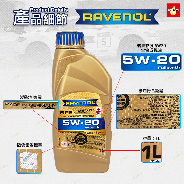品名 : 德國 RAVENOL SFE SAE 5W-20 全合成機油