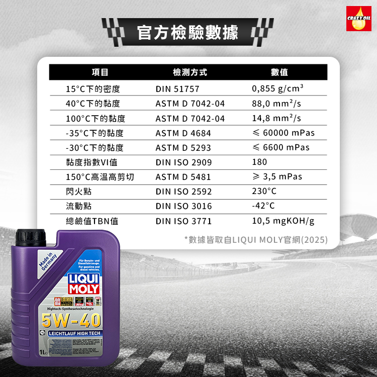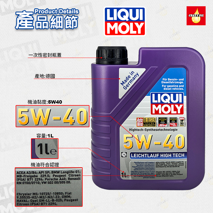品名 : LIQUI MOLY Leichtlauf High Tech 5W-40 合成機油