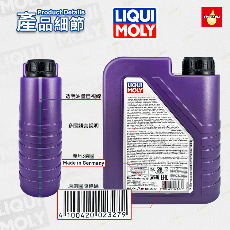 在德國當地市場,LIQUI MOLY 擁有約 30% 潤滑油市佔率與全國第一的添加劑銷量,每年銷出超過 700 萬瓶。多次獲得德國汽車雜誌《AUTO MOTOR UND SPORT》與《AUTO ZEITUNG》最佳品牌獎,是德國消費者心中最具信賴的機油品牌。