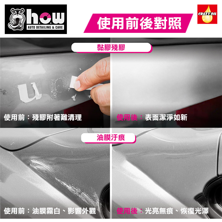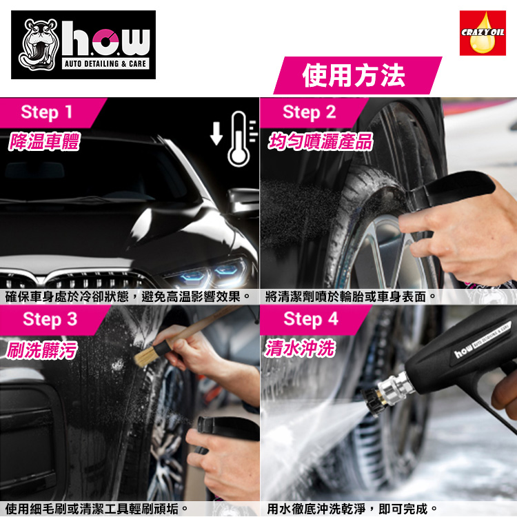 H.o.w 是一個以「實用、專業、好上手」為核心的汽車美容品牌。以專業維修現場、洗車店、車主 DIY 需求為基礎開發,產品線涵蓋清潔、去污、保養、鍍膜前處理、塑料還原、輪胎亮光、防護鍍膜 等領域,讓每位車主都能輕鬆達到專業美容效果。