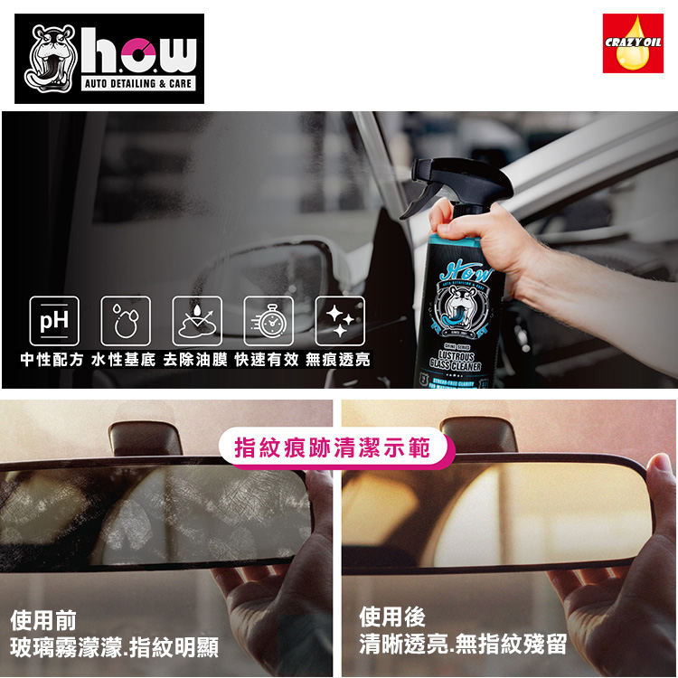 品名 : H.O.W 玻璃油膜清潔劑 LUSTROUS GLESS CLEANER