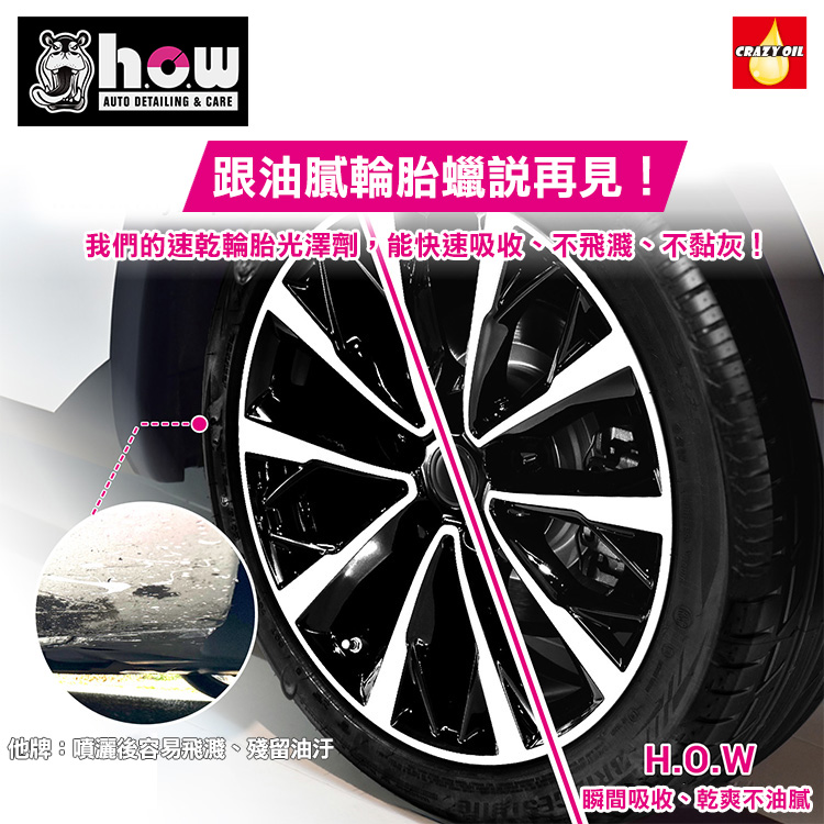 H.o.w 是一個以「實用、專業、好上手」為核心的汽車美容品牌。以專業維修現場、洗車店、車主 DIY 需求為基礎開發,產品線涵蓋清潔、去污、保養、鍍膜前處理、塑料還原、輪胎亮光、防護鍍膜 等領域,讓每位車主都能輕鬆達到專業美容效果。
