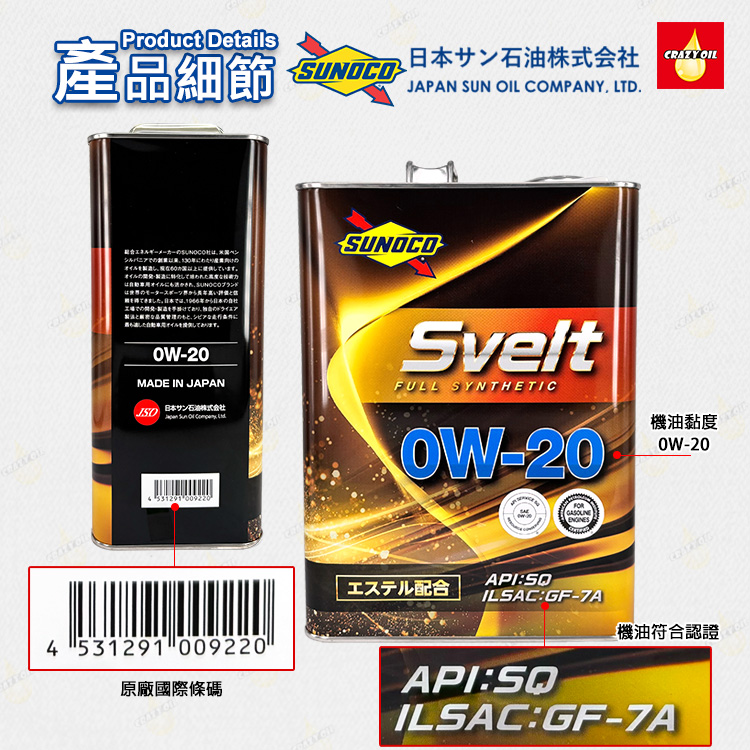 品名 : SUNOCO SVELT 0W20 酯類全合成機油