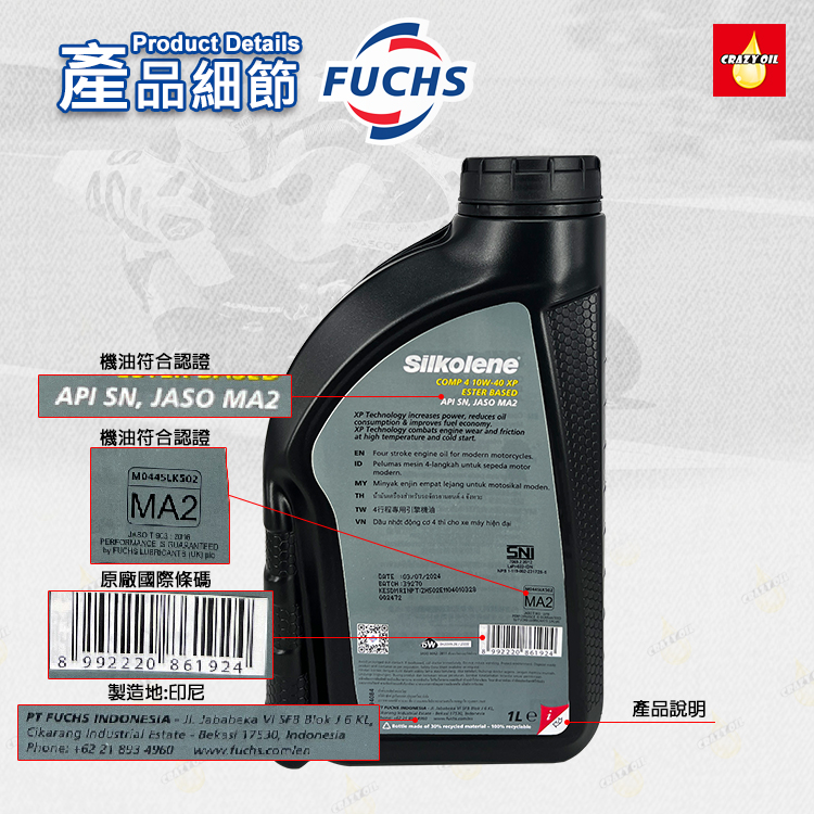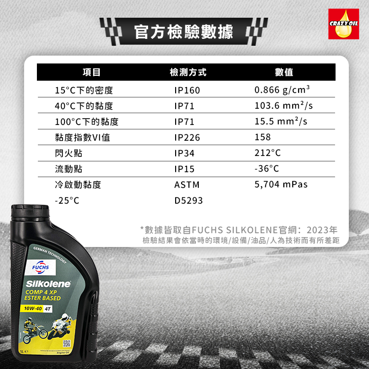 品名 : FUCHS SILKOLENE COMP 4T 10W-40 酯類合成機油 (公司貨)