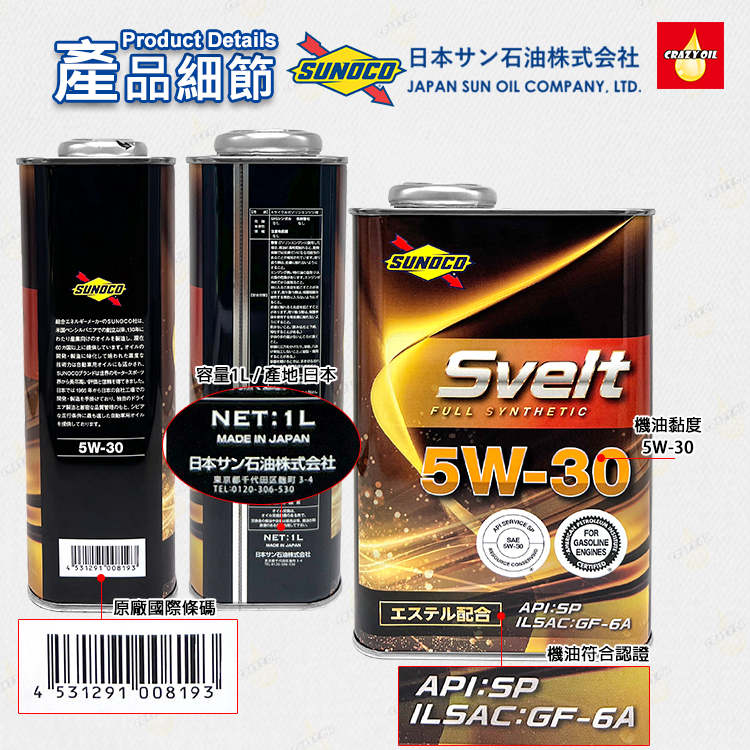 品名 : SUNOCO SVELT 5W30 酯類全合成機油