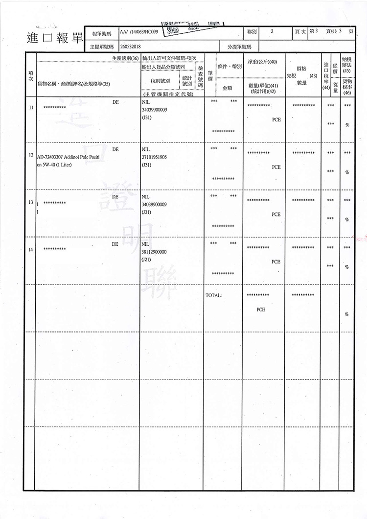 ➤ 全館油品皆已投保一千萬產品責任險,可安心購買。