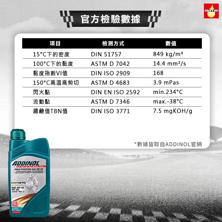品名  : ADDINOL POLE POSITION 4T 5W40 合成機油