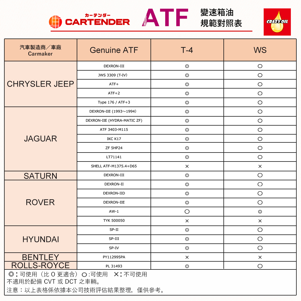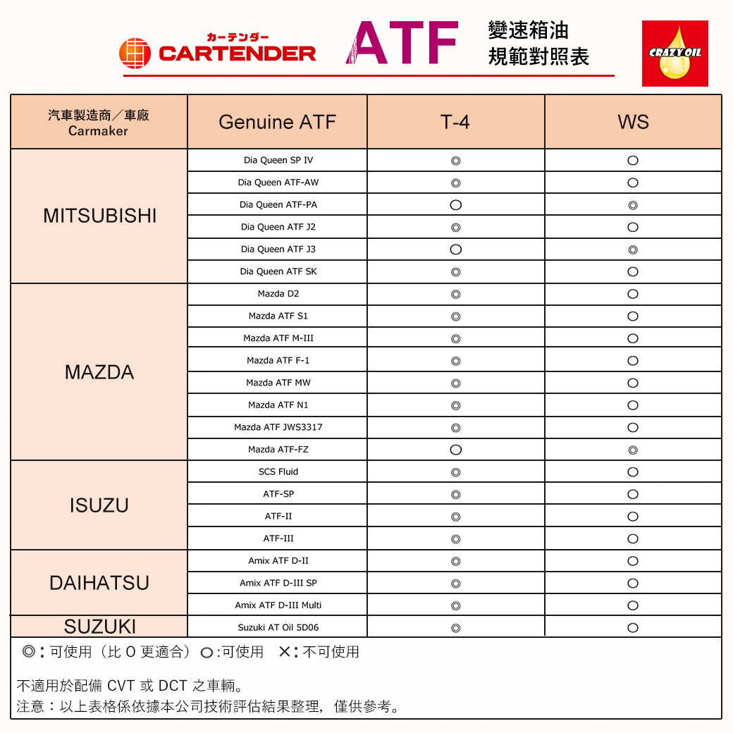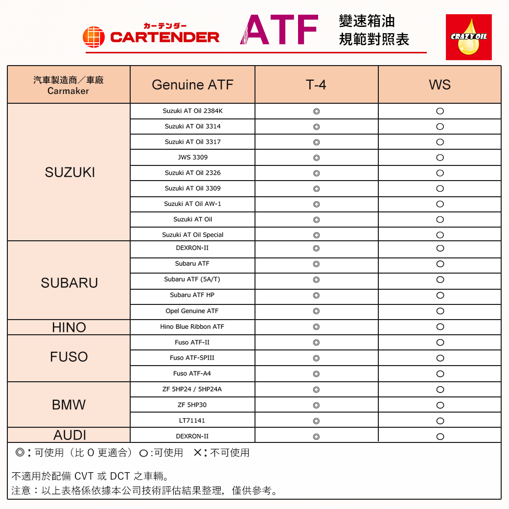 品名 : 日本 CARTENDER ATF CT-WS 全合成變速箱油