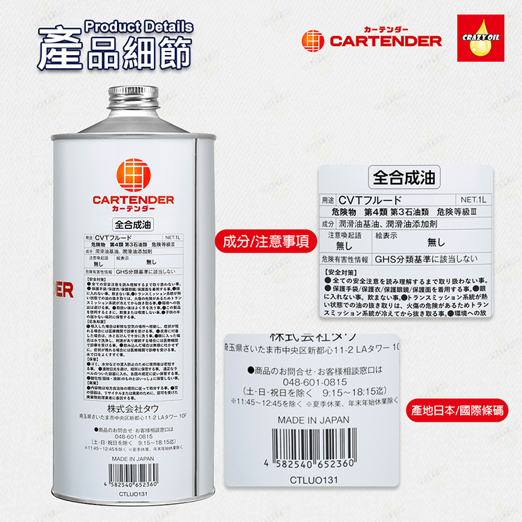 CARTENDER 是隸屬於擁有近 30 年歷史的日本汽車循環經濟標竿企業——「株式会社タウ (TAU Corporation)」旗下的核心潤滑油品牌。