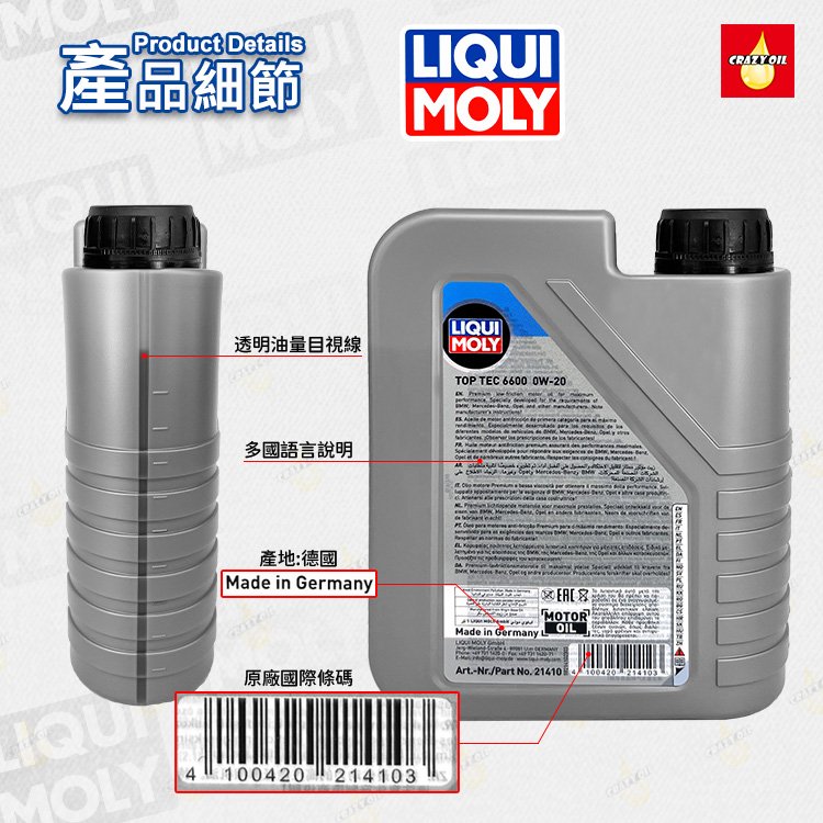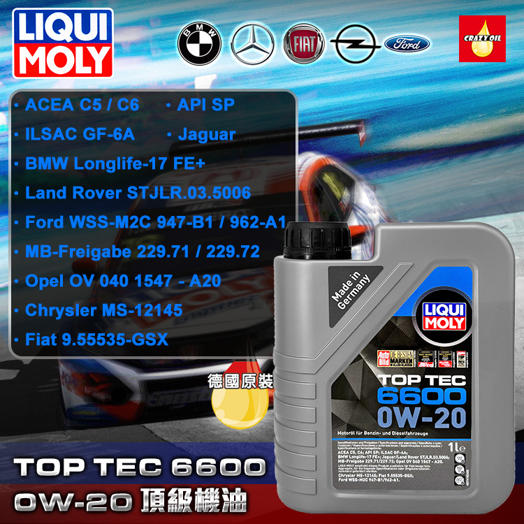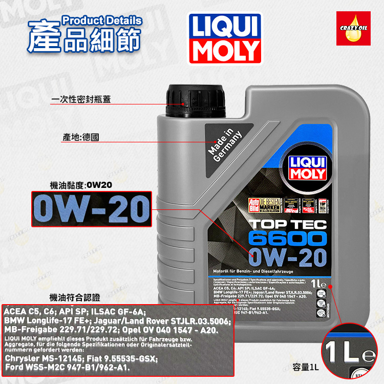 品名 : LIQUI MOLY TOP TEC 6600 0W-20 頂級機油