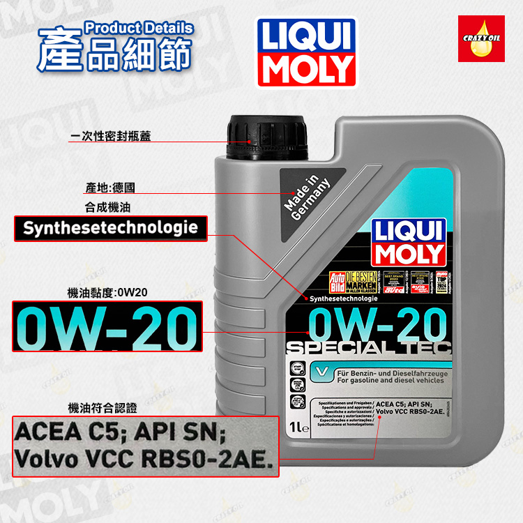品名 : LIQUI MOLY Special Tec V 0W20 合成機油 ➤Volvo VCC RBSO-2AE認證