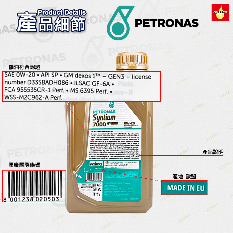 品名 : PETRONAS Syntium 7000 Hybrid 0W20 全合成機油