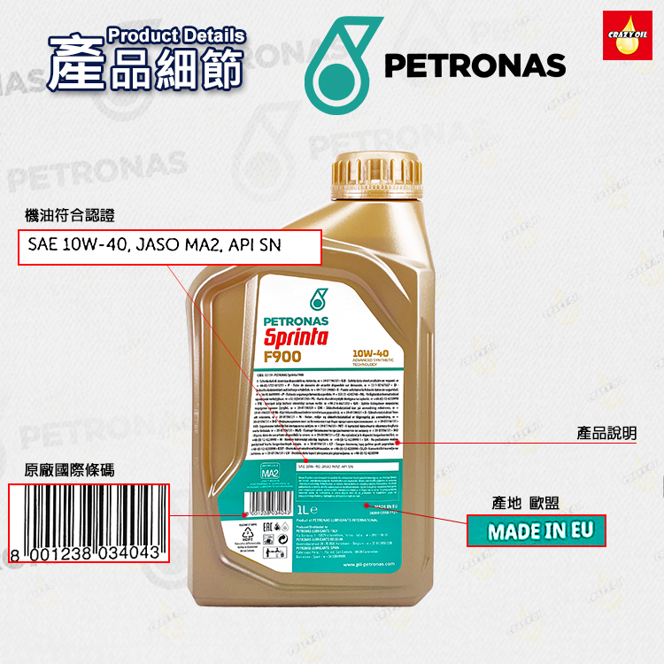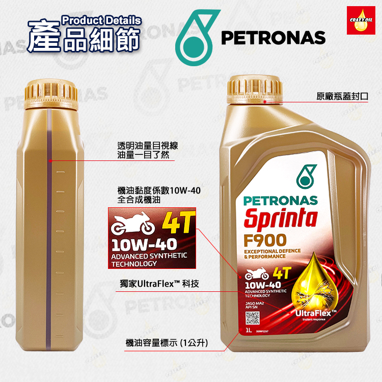 品名 : PETRONAS Sprinta F900 4T 10W40 機車全合成機油