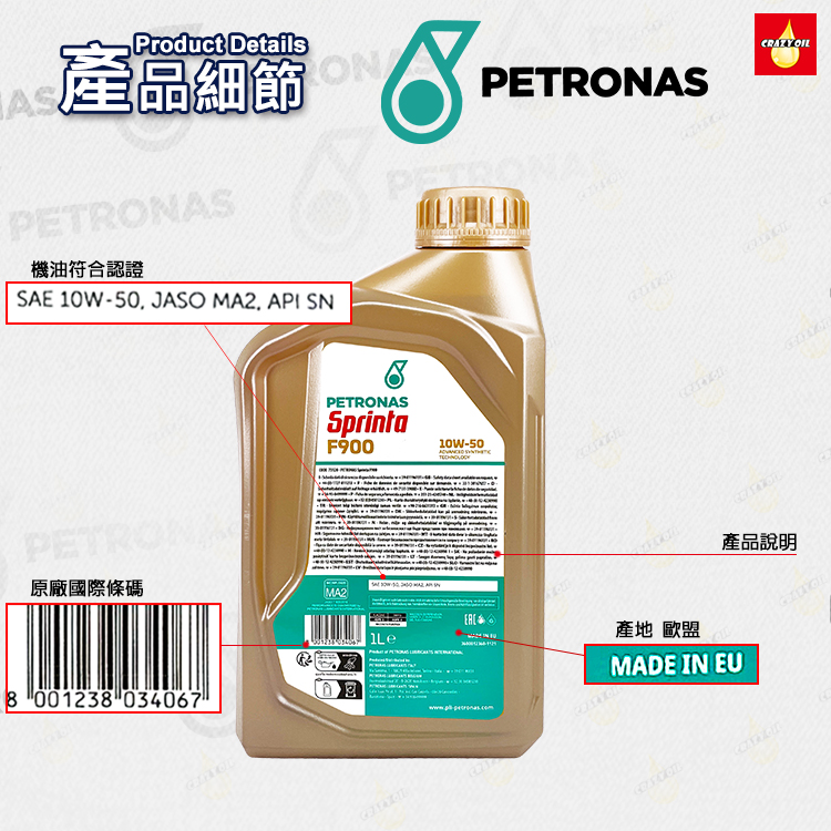 品名 : PETRONAS Sprinta F900 4T 10W50 機車全合成機油