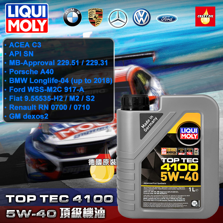 品名 : LIQUI MOLY Top Tec 4100 5W40 全合成機油