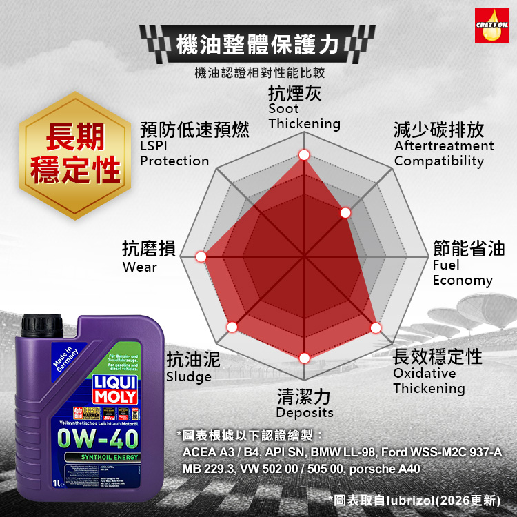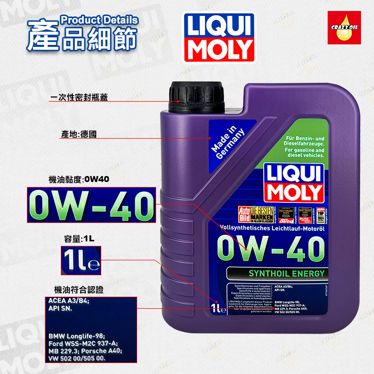 品名 : LIQUI MOLY SYNTHOIL ENERGY 0W-40 全合成機油
