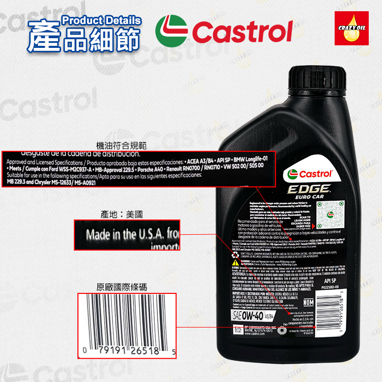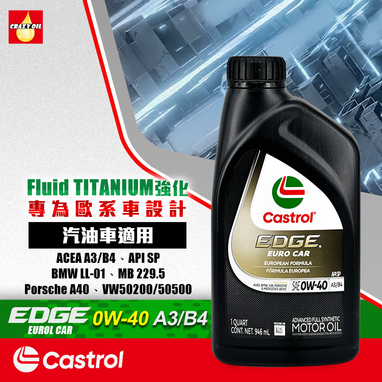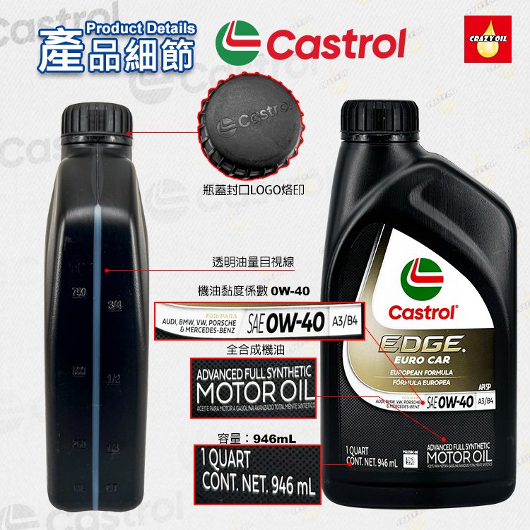 品名 : Castrol EDGE EURO 0W-40 全合成機油 (美版)