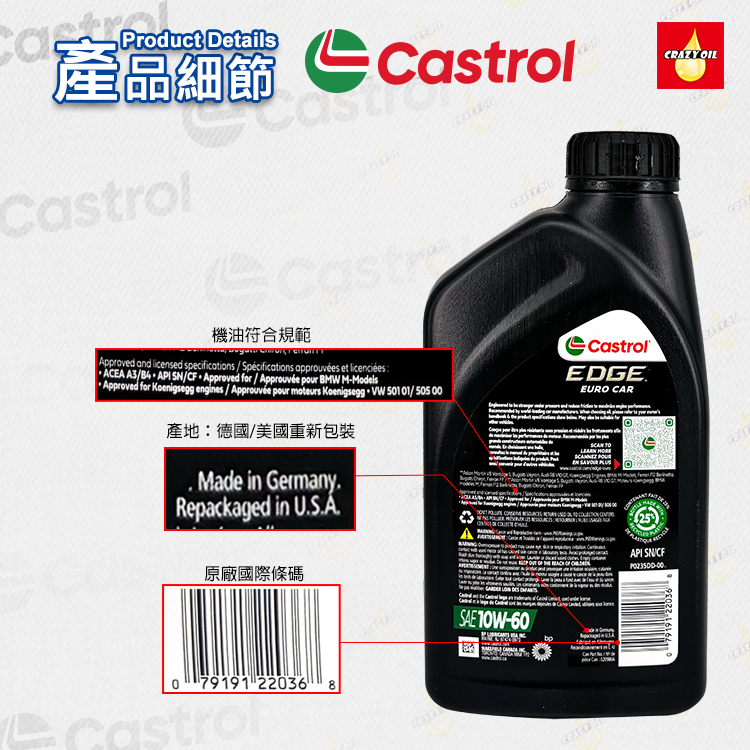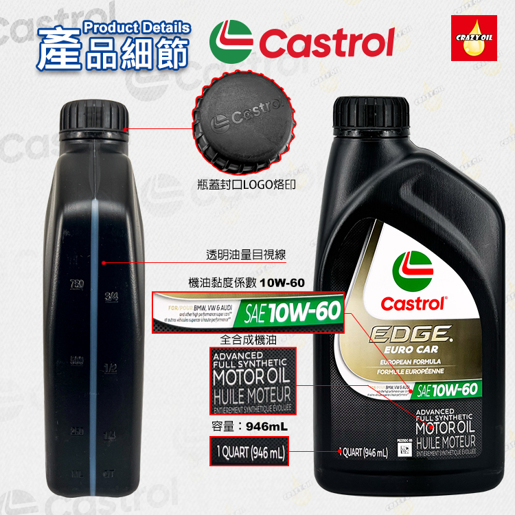 品名 : Castrol EDGE Euro 10W-60 全合成機油 (美版)