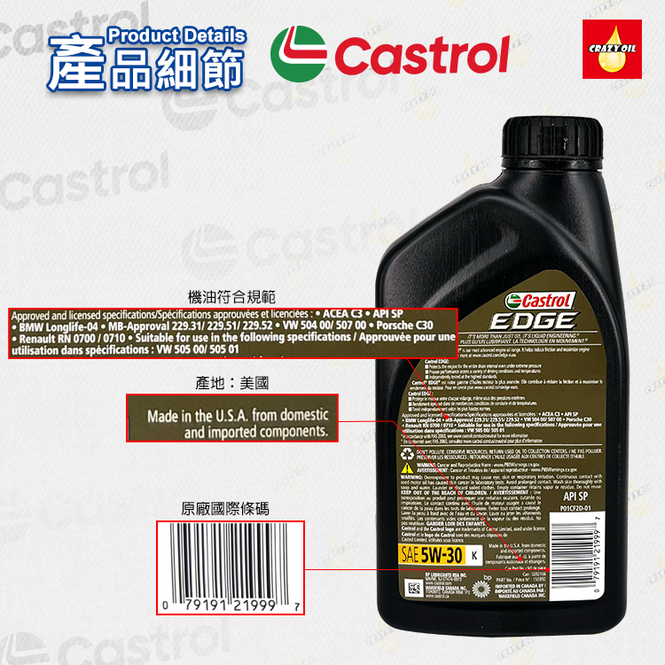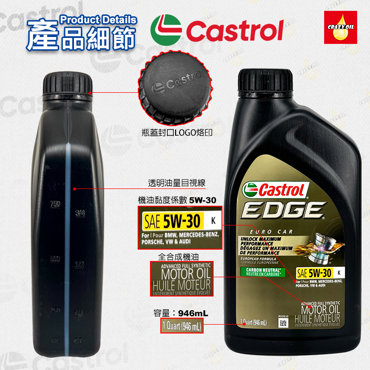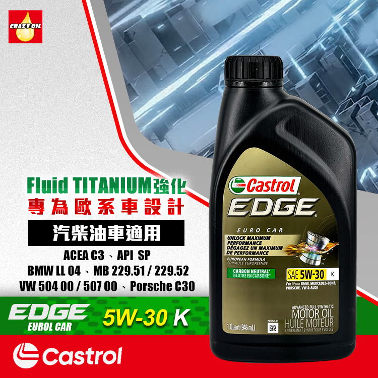 品名 : Castrol EDGE Euro 5W-30 K 全合成機油(美版)