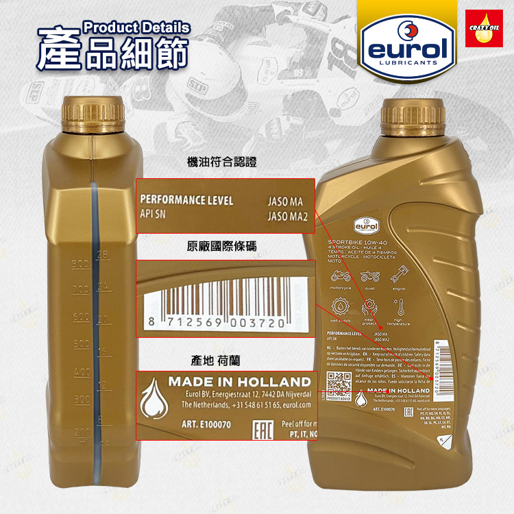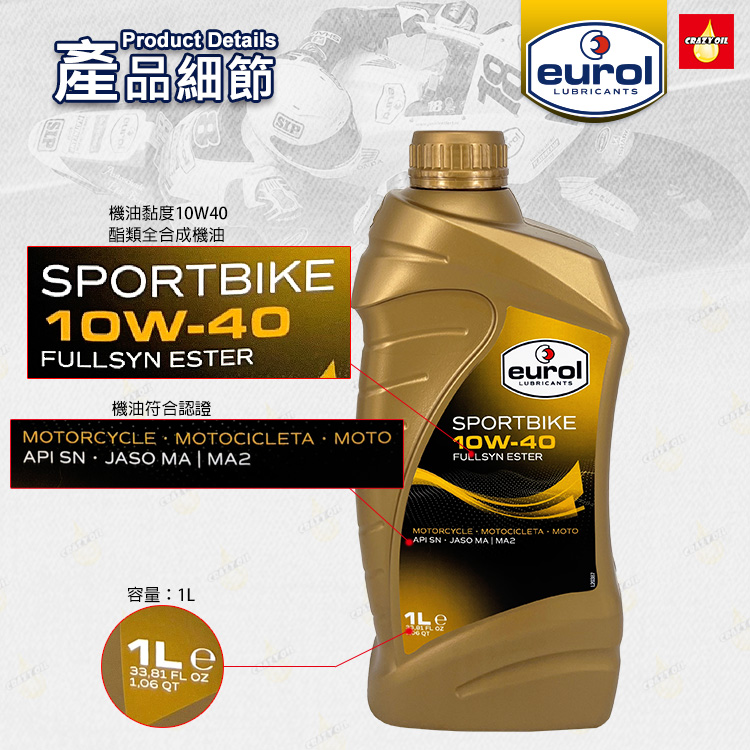品名 : Eurol SportBike 4T 10W-40 機車全合成酯類機油