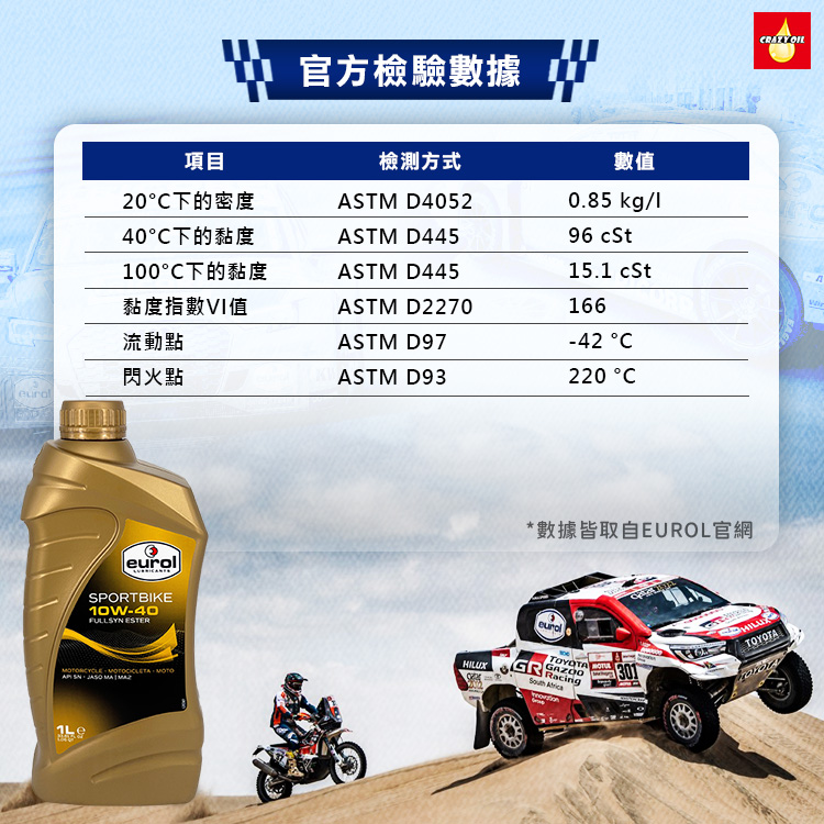 ➤ Eurol SportBike 系列為頂級基礎油提煉,更添加酯類配方。