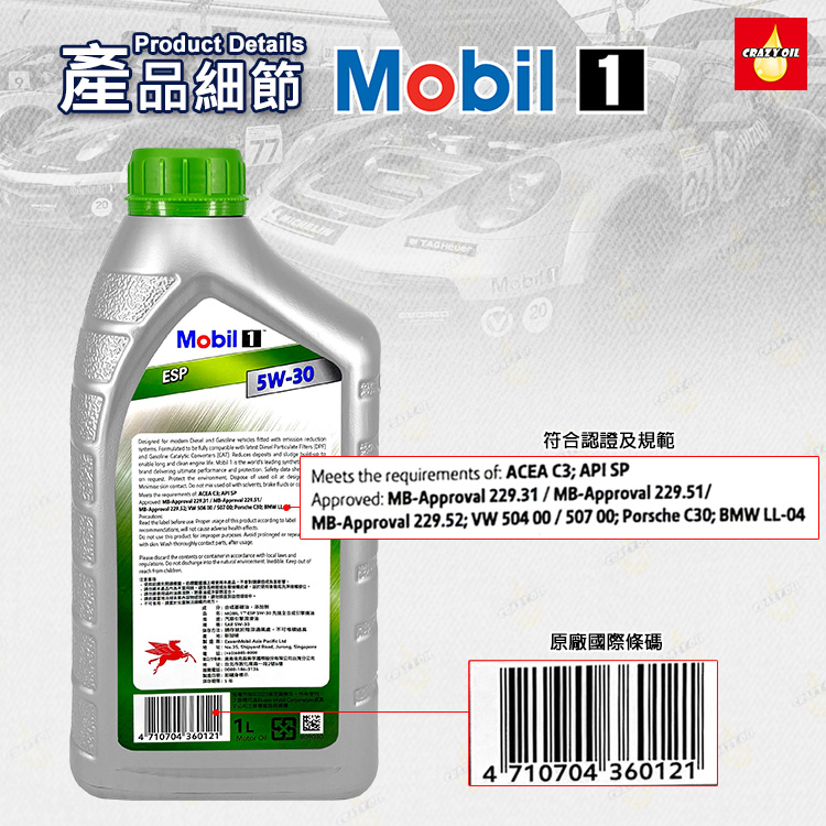 品名 : Mobil 1 ESP FORMULA 5W-30 全合成機油